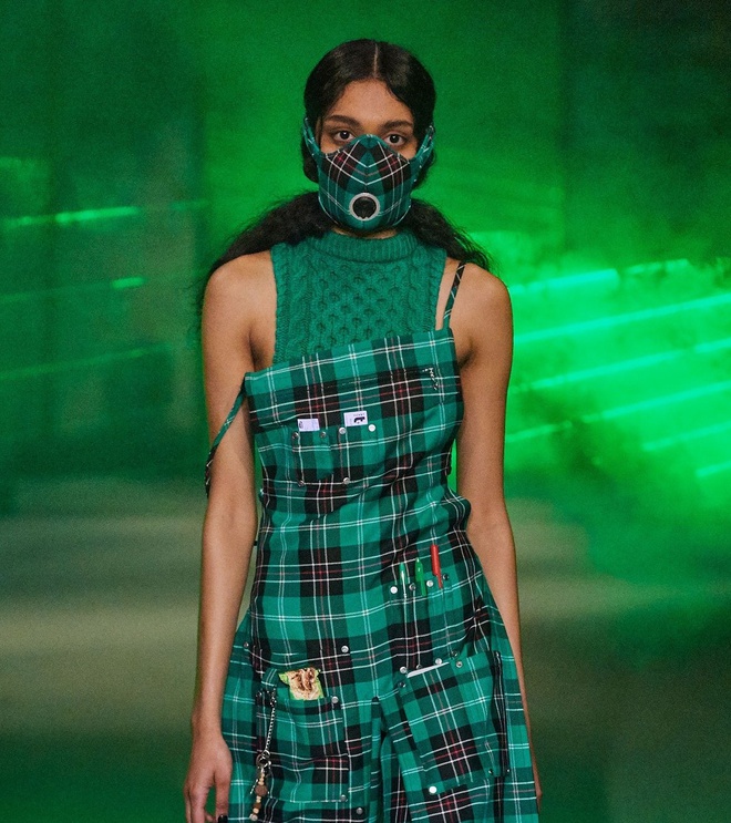 Nổi bật trong các loại mặt nạ thời trang là mẫu phụ kiện của Marine Serre. Thiết kế dễ nhận biết với ký hiệu mặt trăng. Điều khiến sản phẩm trở nên độc đáo là nhờ hệ thống màng lọc không khí. Mẫu khẩu trang được săn đón và liên tục hết hàng ở nhiều nơi.