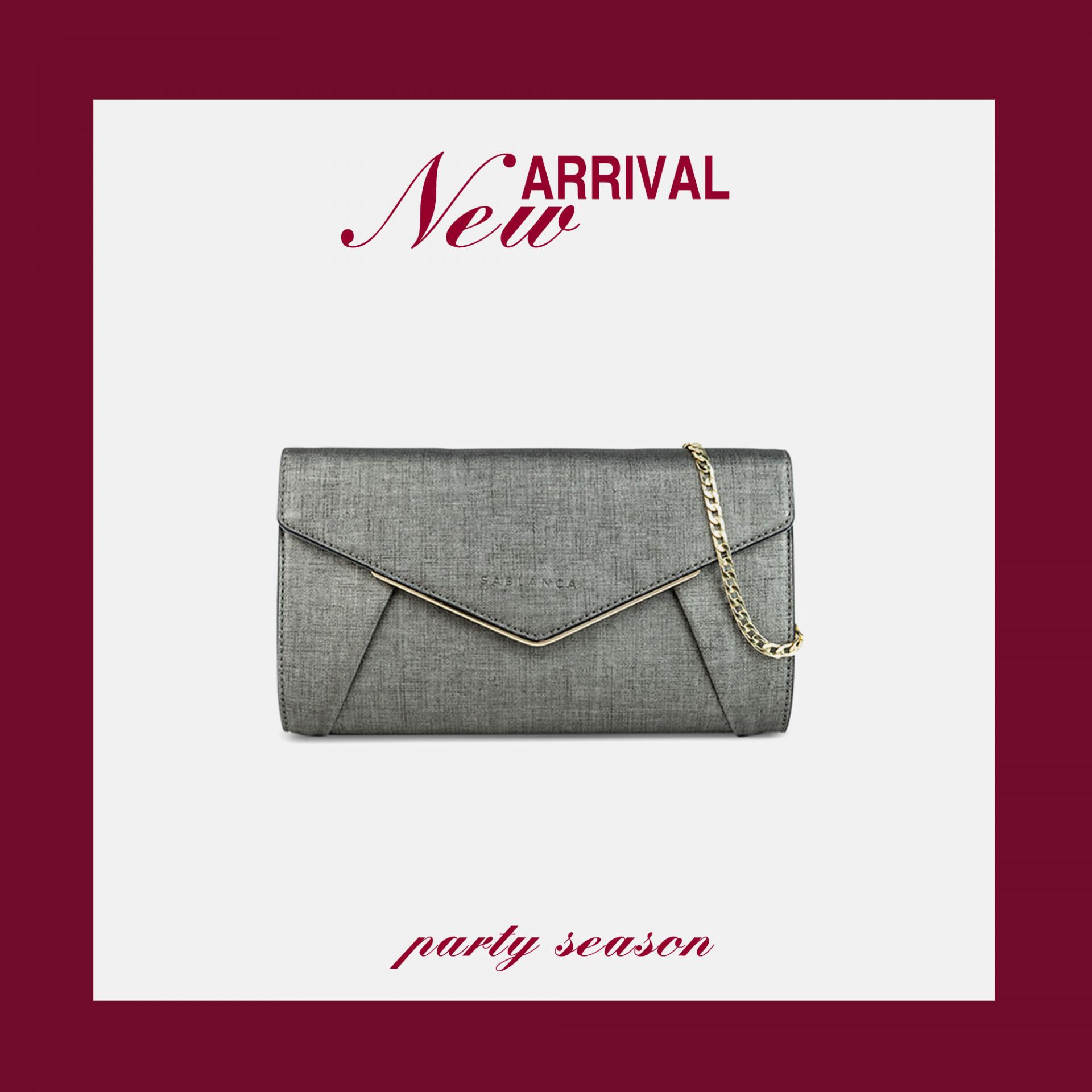 Điểm nhấn của mùa đông năm nay là ví clutch có kiểu dáng phong thư, đính kèm khóa kim loại trên miệng túi và dây đeo tạo nên nét tinh tế, thời thượng. Thiết kế ấn tượng này sẽ là mảnh ghép hoàn hảo cho chiếc váy ánh kim lung linh của nàng.